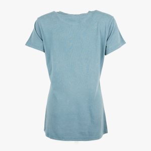 Guitar Company Ladies Fit Tee with Crown Guitar Design in Blue Feel like a true rock star when you wear this stunning crown guitar tee. Velvet neck tape interior collar, with distressed flocking. Featured with an optic wash, contrast side seam stitching, and water based print.