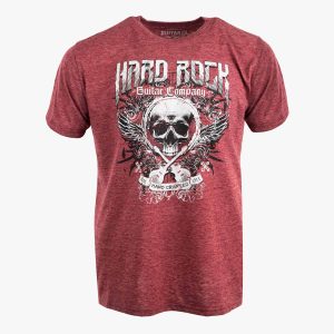 Guitar Company Relaxed Fit Skull Tee in Marbled Maroon Wanted: the perfect wear anywhere distressed effect vintage tee. Found: this Guitar Company Relaxed Fit Skull Tee in Marbled Maroon Style it with: Your favorite pair of black faded jeans, toss on our new Guitar Denim Jacket with Cross Skull Roses design