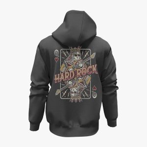 Queen of Hearts Ladies Fit Full Zip Hoodie in Charcoal Envelope yourself in our new Queen of Hearts Ladies Fit Full Zip Hoodie in Charcoal, featuring a front zip and functional pockets. Made of an ultra soft cotton blend, with refined fleece lining – it’s made to keep you warm on our Hard Rock Casino…