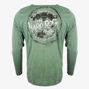 Guitar Company Hybrid Henley Longsleeve Tee in Military Green Elevate your style and ditch your old, dingy band shirt with our Hybrid Henley – the only Henley you need in your closet. This military green long sleeve tee by Guitar Company x Hard Rock boasts a signature two-button closure for a relaxed, slim fit on…