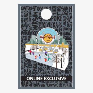 Hard Rock Montreal Ferris Wheel Limited Edition Pin Take a spin through a winter wonderland with the Online Exclusive Montreal Ferris Wheel Pin. This stunning design brings the magic of the season to life, featuring a skating scene set against the skyline of Montreal and towering Ferris wheel. Crisp silhouettes of skaters and bare trees…