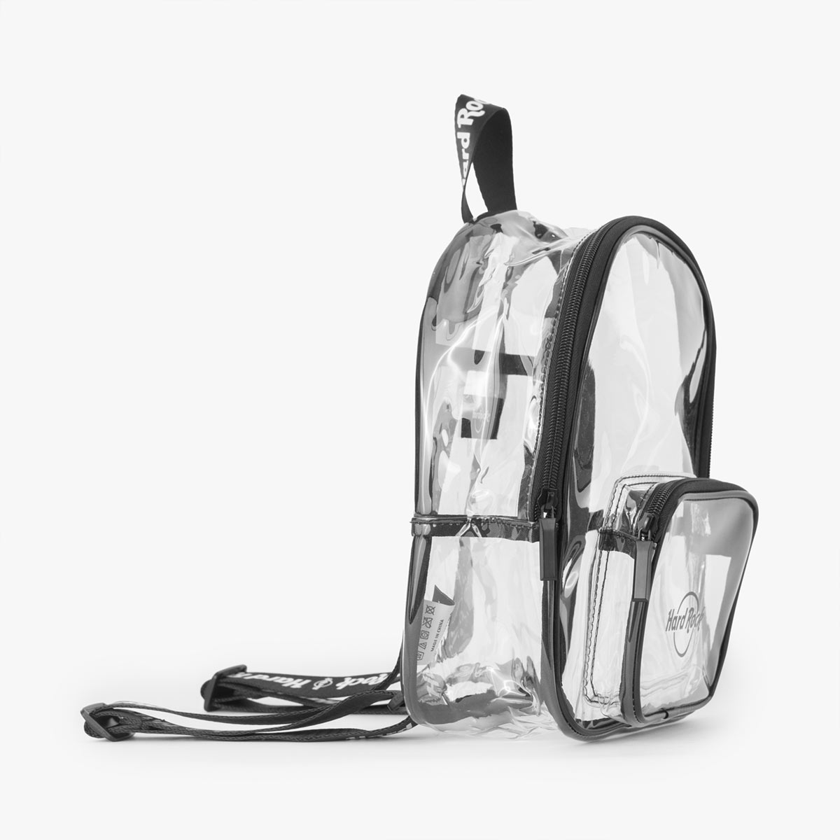 Meet your new travel buddy: our Logo Repeat Black and White Strap Clear Stadium Backpack. Featuring a clear PVC fabrication for easy pack and wear.