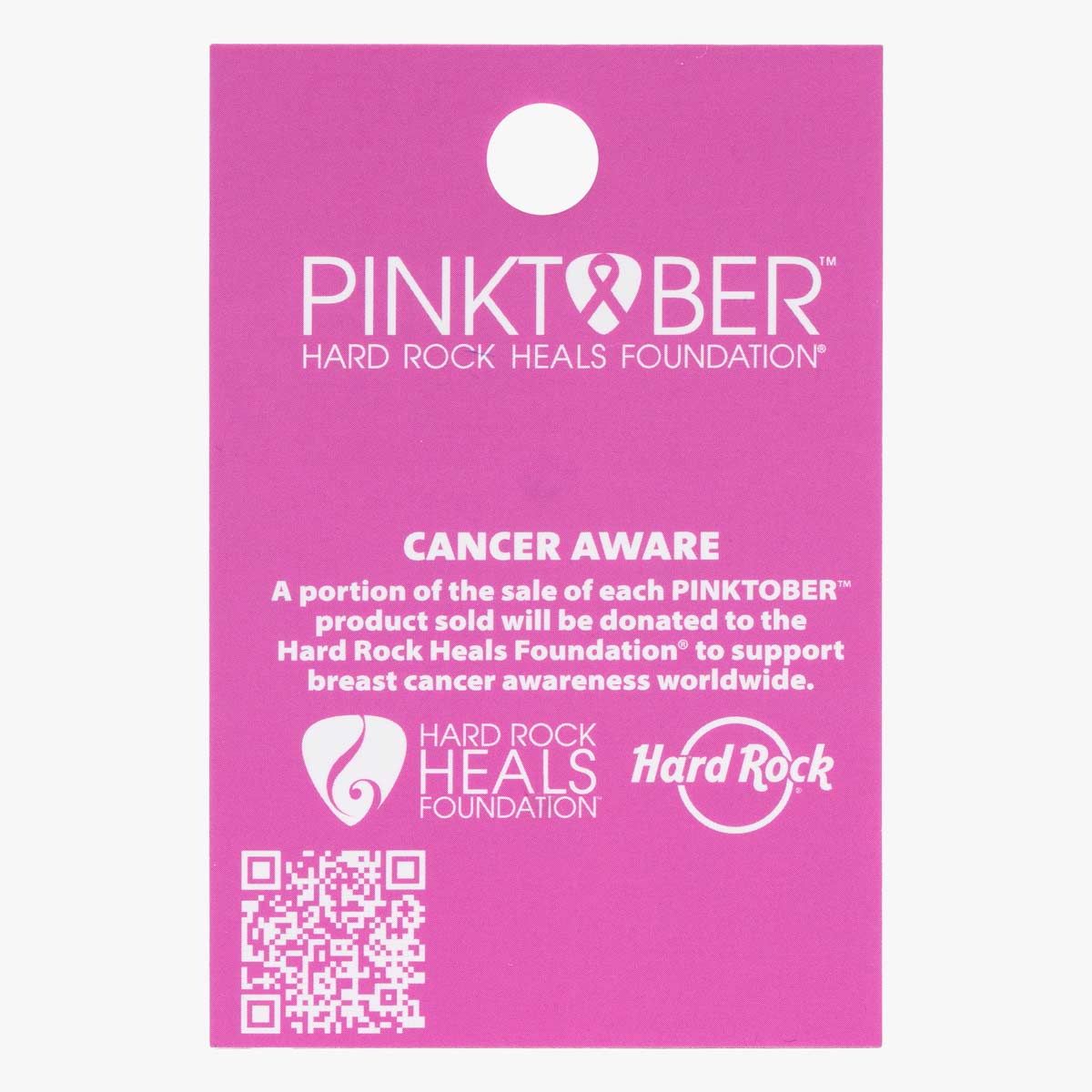 Enjoy rocking this Pinktober pin by celebrating survivors which features two ribbons representing Pinktober and your favorite city drop. Designed by Seminole artist Lauren Posada A portion of the retail price of each PINKTOBER product sold will be donated to the Hard Rock Heals Foundation to support awareness worldwide.
