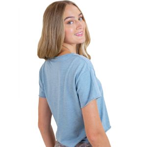 Women’s Ice Blue Logo Crop Tee Introducing our Hard Rock Cafe-inspired classic cropped ice blue tee for women, featuring the striking combination of crimson and gold. Keep it cool in this breezy light blue logo tee featuring a slightly cropped silhouette and soft lightweight fabric with a loose swing fit.
